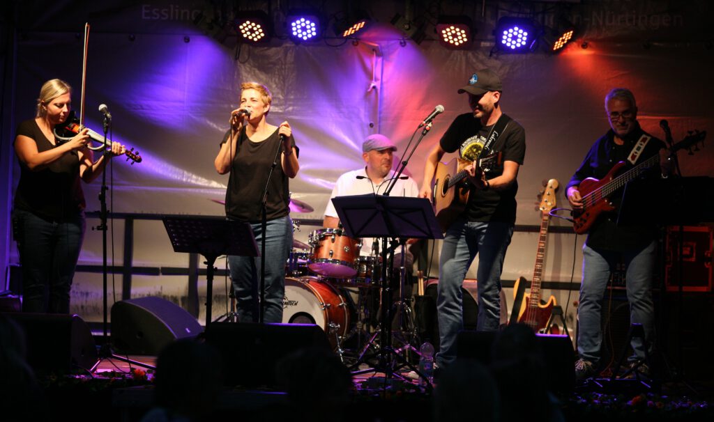 Tim Bendzko und Namika, Frieda Gold und Peter Fox, Sportfreunde Stiller, die toten Hosen und Clueso – alle sind sie zu finden im Programm von Dr. M – einer 5-köpfigen Gruppe Musiker, die seit fast 10 Jahren in Kirchheim und Umgebung zu hören sind. Timo Hertl (Gitarre & Gesang), Uli Maier (Bass), Elisabeth Gaa (Geige & Gesang), Sven Hartmann (Schlagzeug) und Miriam Proch (Gesang) covern deutschsprachigen Pop-& Rock der letzten 30 Jahre. Den Spaß an der Sache merkt man den Musikern sofort an. Ein Feuerwerk an positiver Lebensenergie, mehrstimmig und außergewöhnlich – macht definitiv Lust auf mehr!